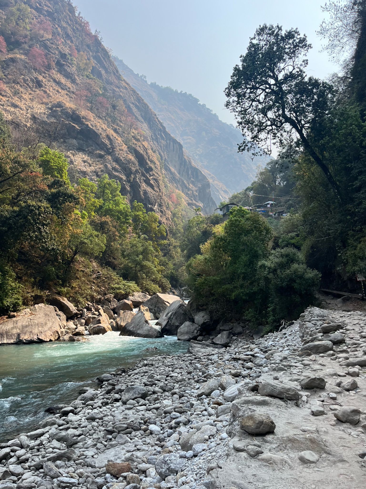 Langtang Khola (Khola is rivier), in de Langtang bergketen ten noorden van Kathmandu.