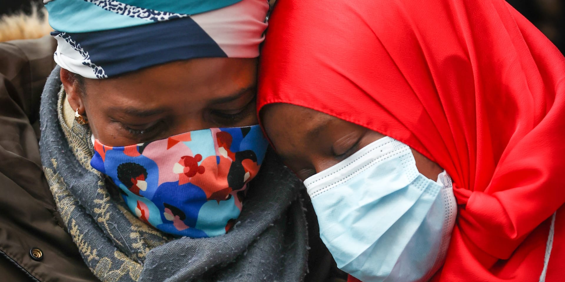 De moeder (links) van Ibrahima Barrie, die aan een hartstilstand stierf na een arrestatie in Brussel, rouwt tijdens een bijeenkomst op 13 januari 2021.