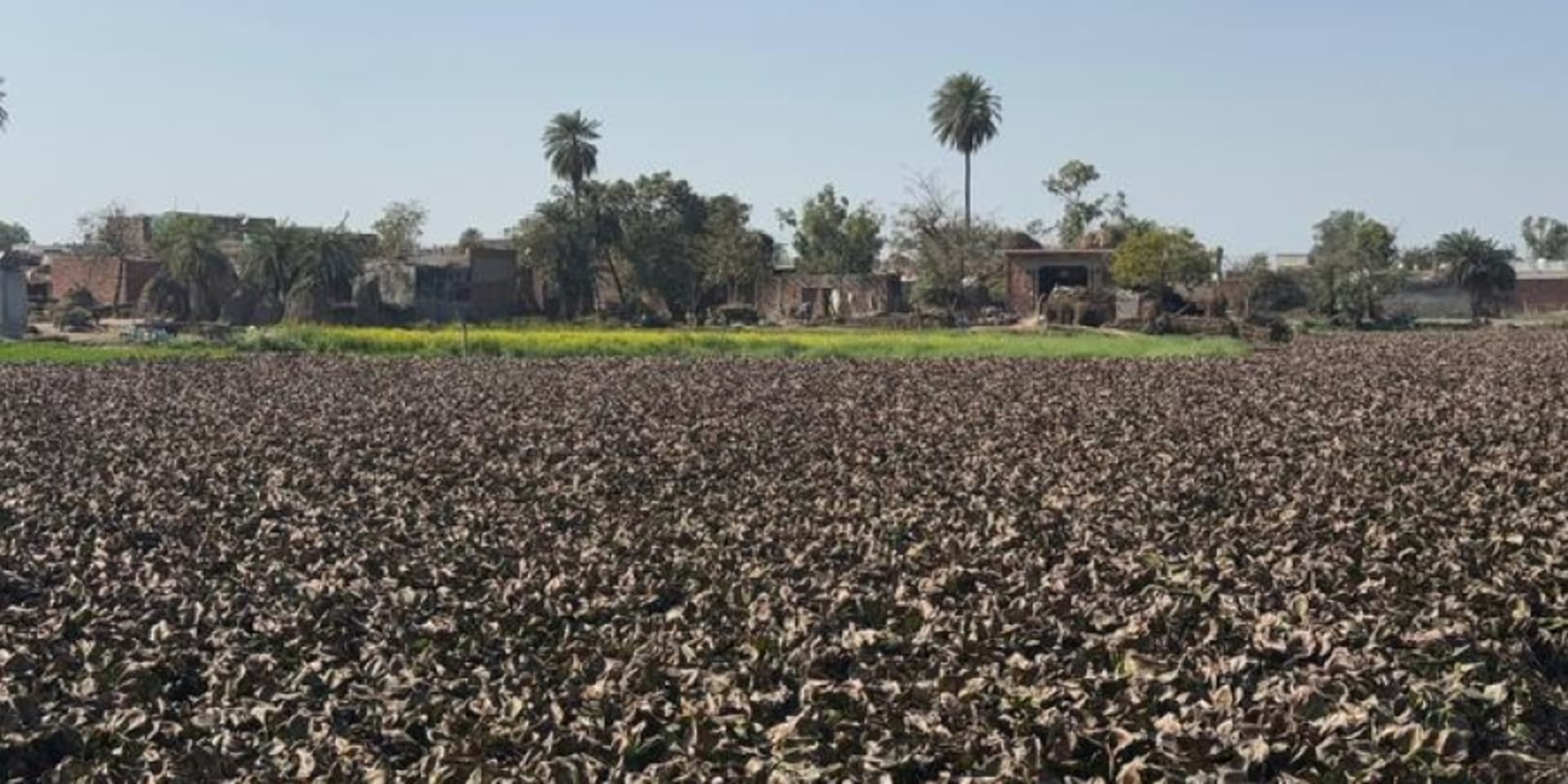 De invasieve waterhyacint heeft een vijver in een dorp in Noord-India totaal overwoekerd. Alle andere planten zijn er verdrongen.