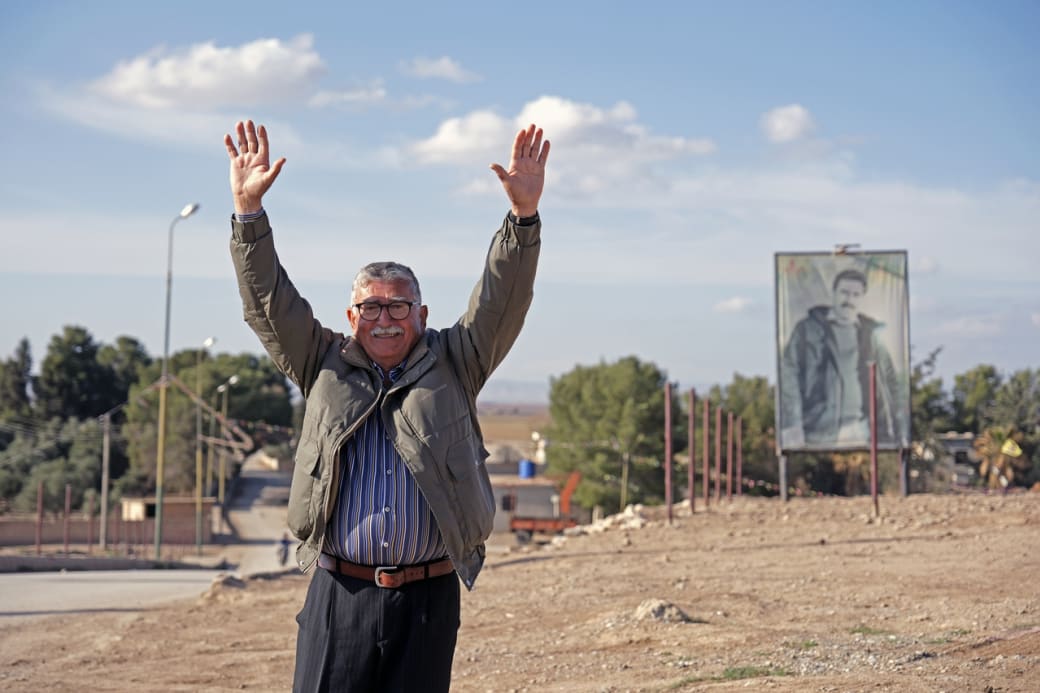 Op haar tafel ligt een foto, gedateerd op de laatste dag van het Assad-regime. ‘We werden wakker in een ander land’, zegt ze. ‘We huilden van angst. Goed dat de YPG de controle behield, want wij kunnen niet leven onder jihadisten.’ Op Bohars balkon klinkt muziek voor Newroz, het Koerdische nieuwjaar. Aan een rotonde danst een menigte rond een vuur. Een levensgroot portret van PKK-leider Abdullah Öcalan hangt aan een muur. De Syrische vlag ontbreekt. Veel Arabische Syriërs noemen Koerden separatisten en dreigden met aanvallen.